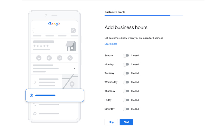 Whenever you’re open, add that information like your working hours and which days are closed and open.