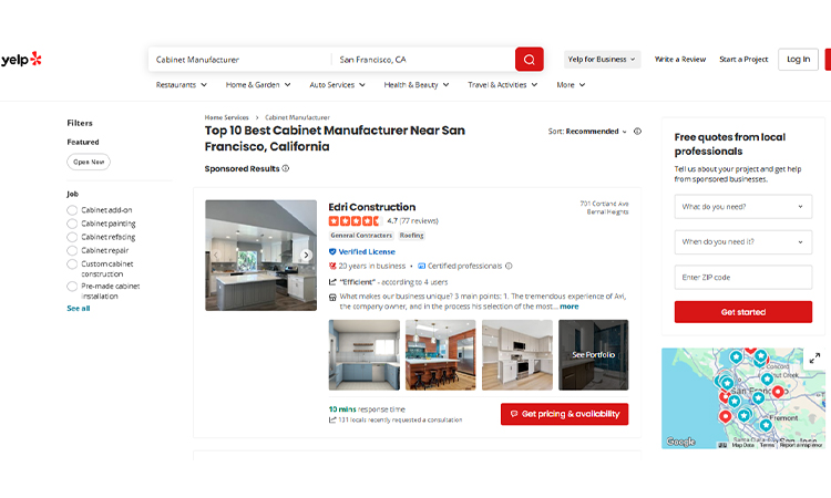 Moreover, to improve local seo, you can list your cabinet maker’s company name in various local directories like Yelp, Bing Places for Business, Superpages, Manta, Yellow Pages (USA), and Better Business Bureau (BBB). When you list your company at numerous places, it will increase your online presence. It will help you to connect with more audiences than you can ever imagine. The more you list your business name, the more chances to get new clients or qualified leads.